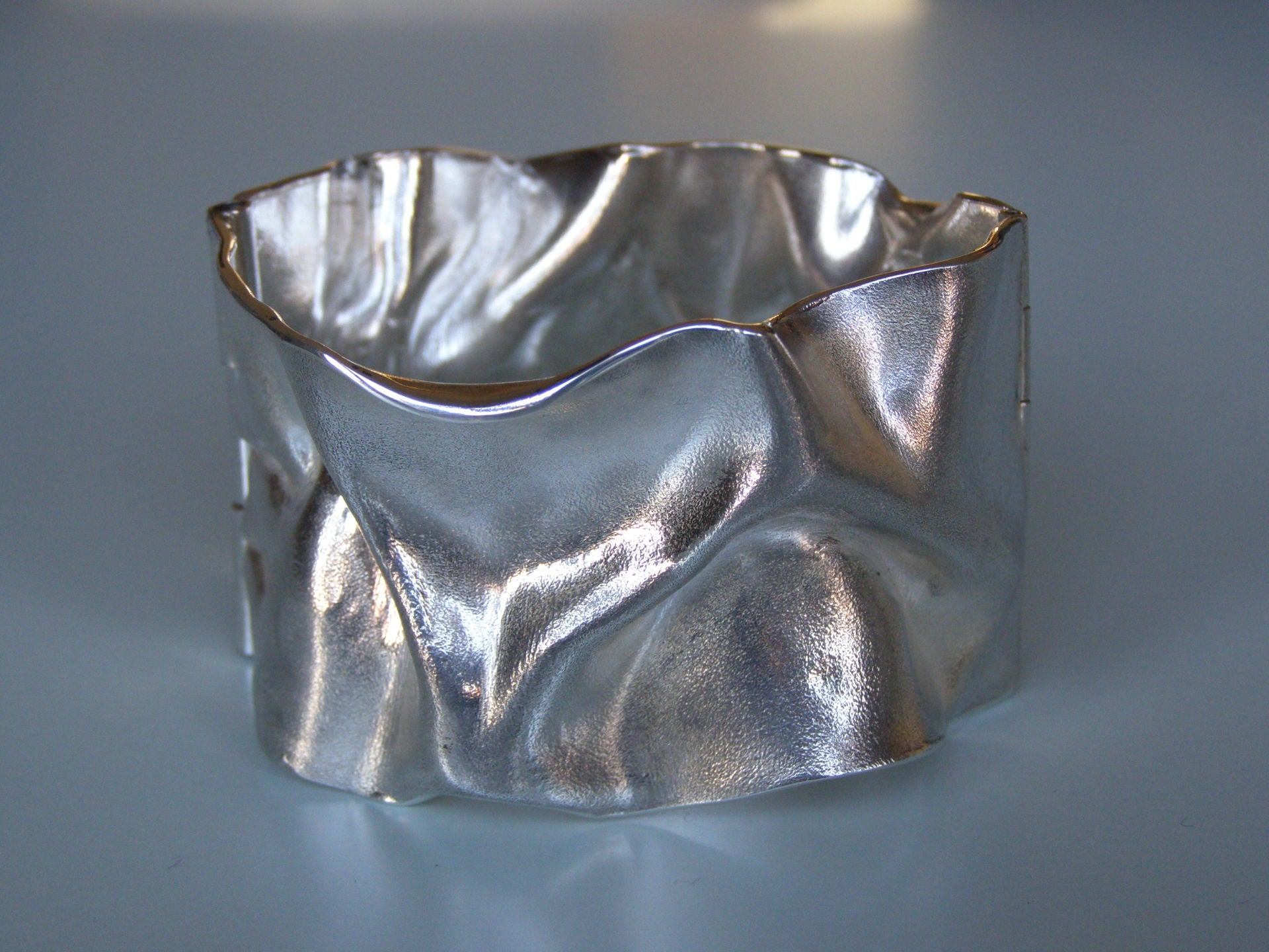 De armbanden uit de eigen collectie zijn meestal vervaardigd uit zilver. Ik ga daar bij uit van plaatmateriaal maar werk ook met de verloren was methode.